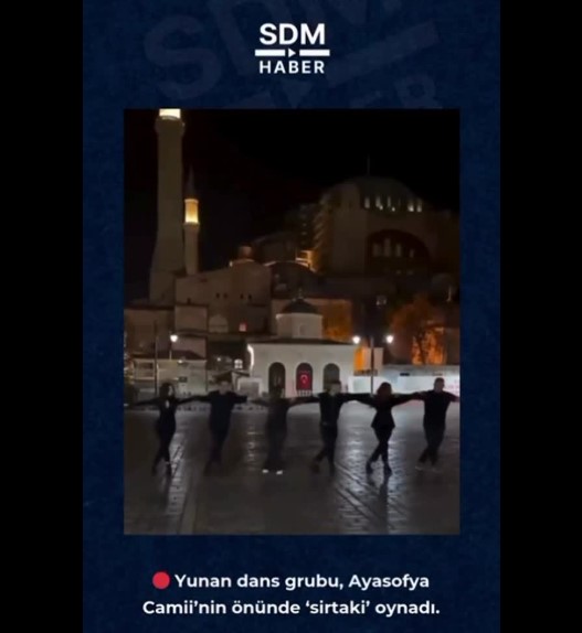 Χαμός και ένταση προκλήθηκε στην Τουρκία από την αυθόρμητη εμφάνιση έξι Ελλήνων μπροστά στην Αγία Σοφία να χορεύουν το τραγούδι «Τ’ άγια χώματα της Πόλης».