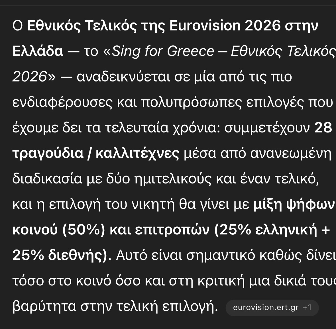 Διχασμένο το κοινό τόσο στην Ελλάδα όσο και στο εξωτερικό για το ποιος θα είναι επίσημα αυτός που θα βγάλει τη χώρα μας ασπροπρόσωπη στην Eurovision 2026 στη Αυστρία.