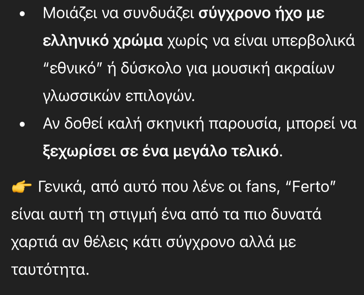 Συγκεκριμένα το Chat μας δίνει πρώτο τον Akyla, με το «Ferto», όπου το παρουσιάζει ως το πιο δυνατό χαρτί της Ελλάδας, με σύγχρονο ήχο και ελληνικό χρώμα.