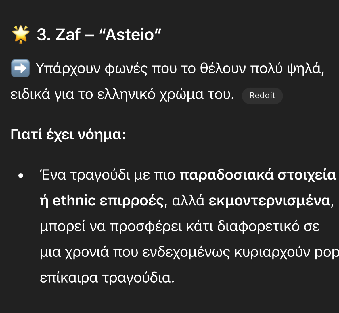 Στην 3η θέση κάνει την έκπληξη ο ZAF με το «Asteio», το οποίο σύμφωνα με το μποτάκι είναι αρκετά… ελληνικό και μπορεί να δώσει μία τελείως διαφορετική νότα στη Eurovision και να ξεχωρίσει.