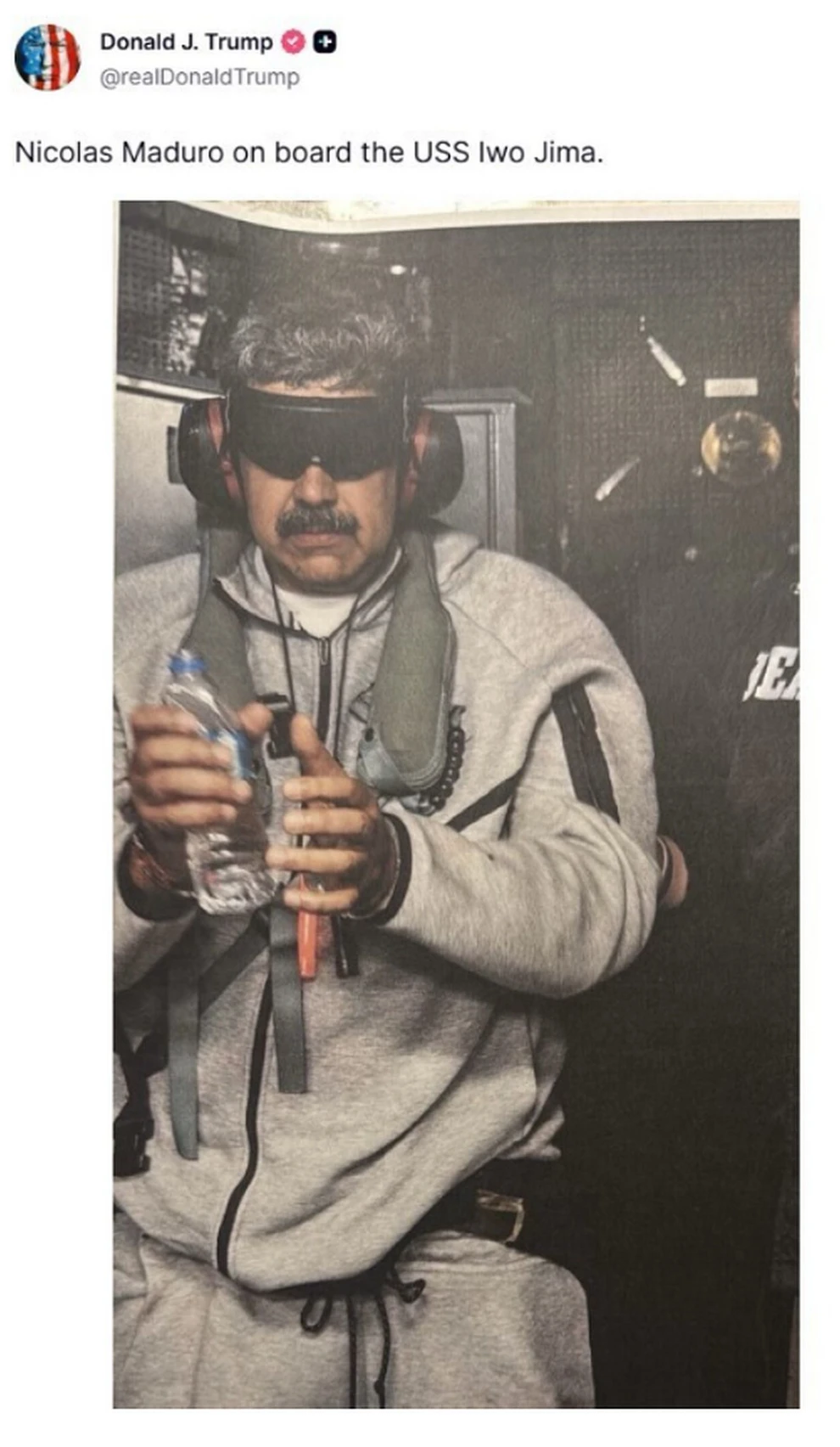 Αυτή τη φορά ήταν μια φωτογραφία του Βενεζουελάνου ηγέτη με χειροπέδες και γκρι φόρμα.