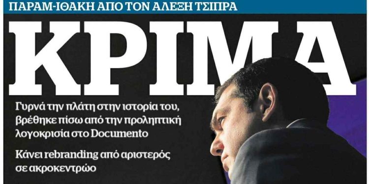 Πάμε να το αλλάξω το τροπάριο και να σας πάω στον θαυμαστό κόσμο της Αριστεράς. Είδα, το χθεσινό πρωτοσέλιδο του Documento, που κυκλοφόρησε με τον πηχυαίο τίτλο «ΚΡΙΜΑ» και τον υπέρτιτλο «ΠΑΡΑΜ-ΙΘΑΚΗ ΑΠΟ ΤΟΝ ΑΛΕΞΗ ΤΣΙΠΡΑ»!