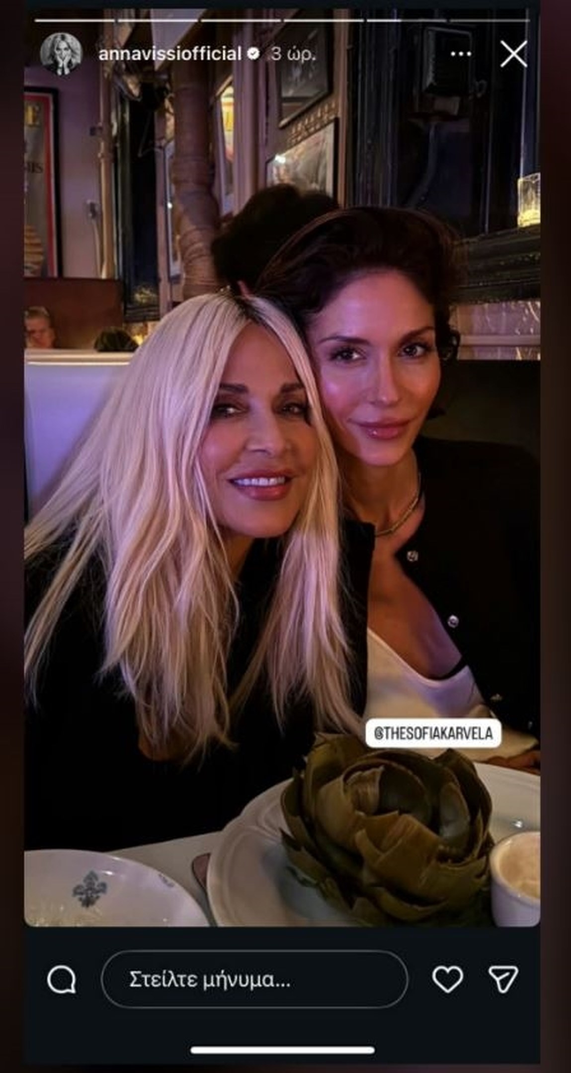 Η μεγάλη παρέα απαθανατίστηκε σε κοινή βραδινή έξοδο, σ΄ ένα εντυπωσιακό dinne για τα 42α γενέθλια της Σοφίας Καρβέλα έχοντας στο πλευρό της τόσο τη μητέρα της όσο και το εφοπλιστικό ζεύγος Κούστα.