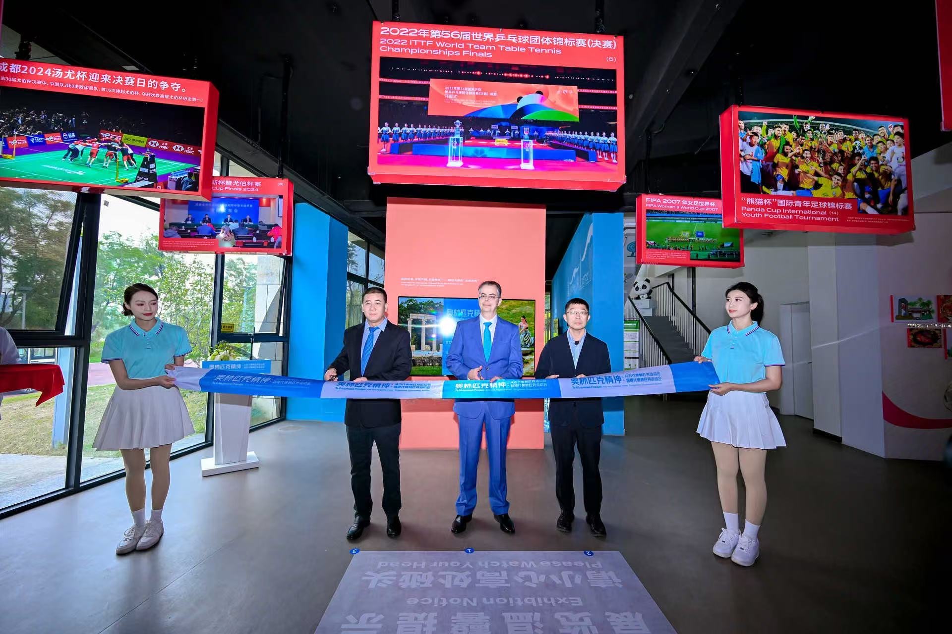 Αργότερα, στο Αθλητικό Εκθεσιακό Κέντρο του Τσενγκντού, παρουσία αξιωματούχων της τοπικής κυβέρνησης, εκπροσώπων του Τύπου και άλλων καλεσμένων, ο Δρ. Καλπύρης εγκαινίασε την έκθεση, «Το Ολυμπιακό Πνεύμα: Από τους Αρχαίους στους Σύγχρονους Ολυμπιακούς Αγώνες», την οποία χαρακτήρισε ως «μία ισχυρή υπενθύμιση των κοινών Ολυμπιακών παραδόσεων που ενώνουν την Ελλάδα και την Κίνα».