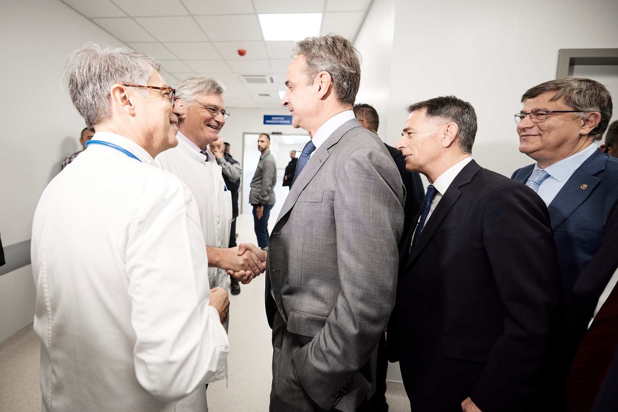 Κατά την ξενάγησή του στο νέο ογκολογικό τμήμα του Αττικού Νοσοκομείου, αλλά και στην υπερσύγχρονη πτέρυγα των ΤΕΠ, που επίσης είναι έτοιμη να λειτουργήσει τις προσεχείς εβδομάδες, ο Κυριάκος Μητσοτάκης συνομίλησε με αρκετό κόσμο.