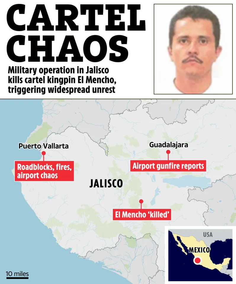 Η αιτία αυτής της έκρηξης βίας ήταν η στρατιωτική επιχείρηση που οδήγησε στον θάνατο του Ελ Μέντσο την Κυριακή, μια ενέργεια που θεωρείται από τις πιο σημαντικές στην προσπάθεια του Μεξικού να χτυπήσει τους ισχυρούς διακινητές ναρκωτικών στη χώρα.
