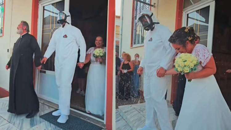 Ένα βίντεο που κάνει τις τελευταίες ώρες τον γύρο του TikTok δείχνει έναν τολμηρό ή μήπως όχι, νεόνυμφο να βγαίνει από την εκκλησία φορώντας μια… ολόσωμη στολή απεντόμωσης!