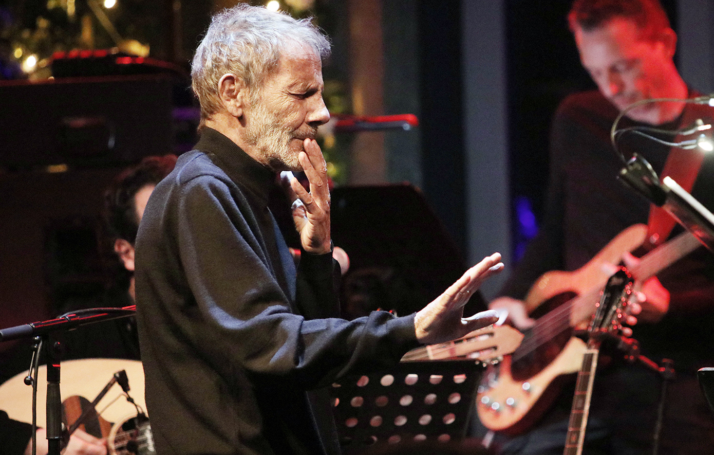 Ο ίδιος διευθύνει, δίνει παλμό σε τραγουδιστές και μουσικούς, αφηγείται ιστορίες της δημιουργίας του έργου, τραγουδάει το «Πρακτορείο».