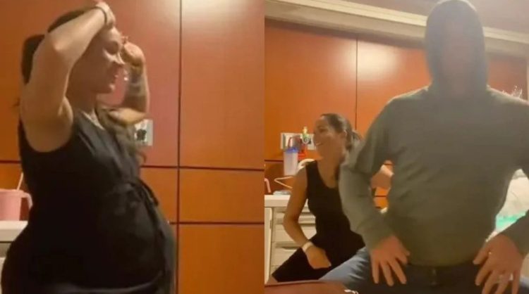 Στο βίντεο που κυκλοφόρησε την Τετάρτη, η Μαρκλ φορούσε ένα μαύρο φόρεμα καθώς στριφογύριζε στην αίθουσα τοκετού, κουνούσε τους γοφούς της και χειροκροτούσε στον ρυθμό της μουσικής.