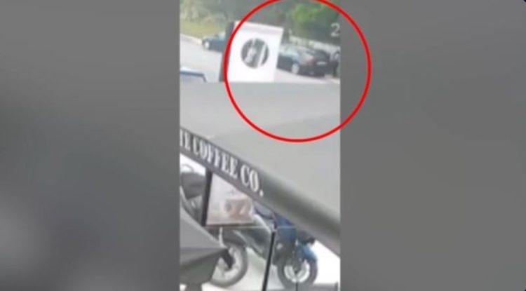 Στο βίντεο φαίνονται κάποια άτομα, που σταματούν με το όχημά τους, να πηγαίνουν στο διπλανό όχημα, να σπάνε το τζάμι και να παίρνουν μία τσάντα.