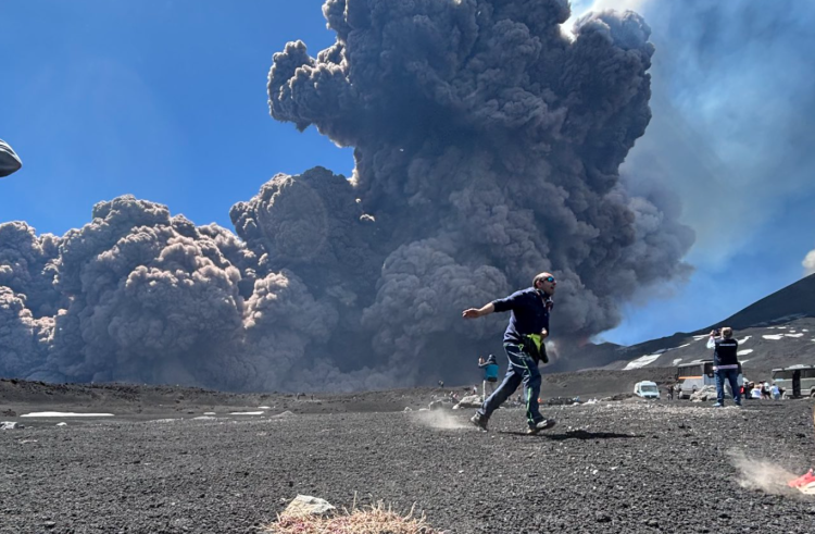 Σε βίντεο που κυκλοφορούν, φαίνονται τουρίστες να απομακρύνονται βιαστικά και τρομοκρατημένοι, καθώς ένα πυκνό σύννεφο ηφαιστειακής τέφρας και αερίων κινείται προς το μέρος τους.