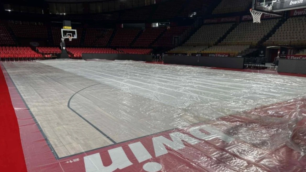 Τραγική η κατάσταση στο ΣΕΦ με μουσαμάδες για την προστασία του παρκέ από τη βροχή μετά το Ολυμπιακός – Πανιώνιος