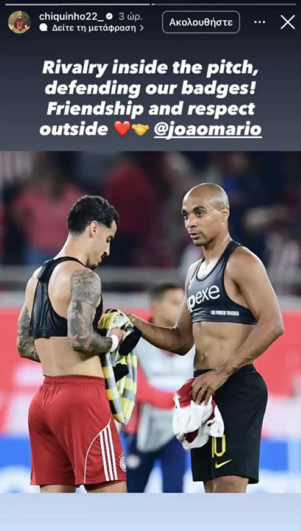 Με την ολοκλήρωση της αναμέτρησης, οι Τσικίνιο και Ζοάο Μάριο δεν παρέλειψαν να ανταλλάξουν φανέλες, προκειμένου να θυμούνται τη συνάντησή τους.