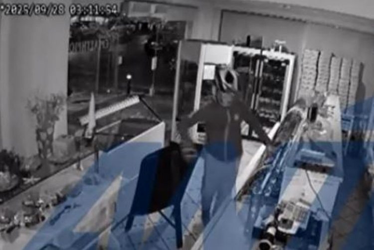 Η κάμερα κατέγραψε καρέ καρέ την διάρρηξη σε χρόνο ρεκόρ.