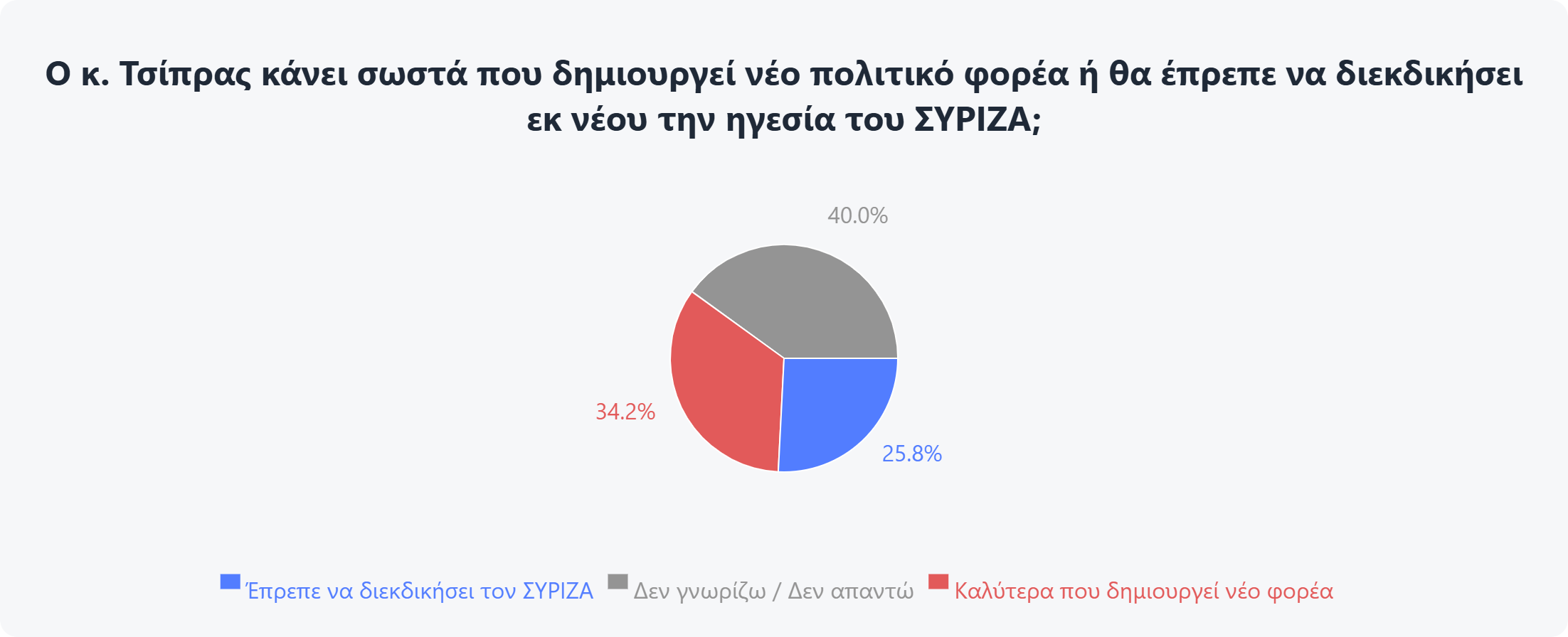 Συμπερασματικά, ο Αλέξης Τσίπρας διατηρεί έναν σταθερό πυρήνα υποστηρικτών, αλλά για να διευρύνει την απήχησή του θα χρειαστεί να παρουσιάσει κάτι ουσιαστικά νέο και πειστικό, προσαρμοσμένο στις σημερινές κοινωνικές και οικονομικές συνθήκες.