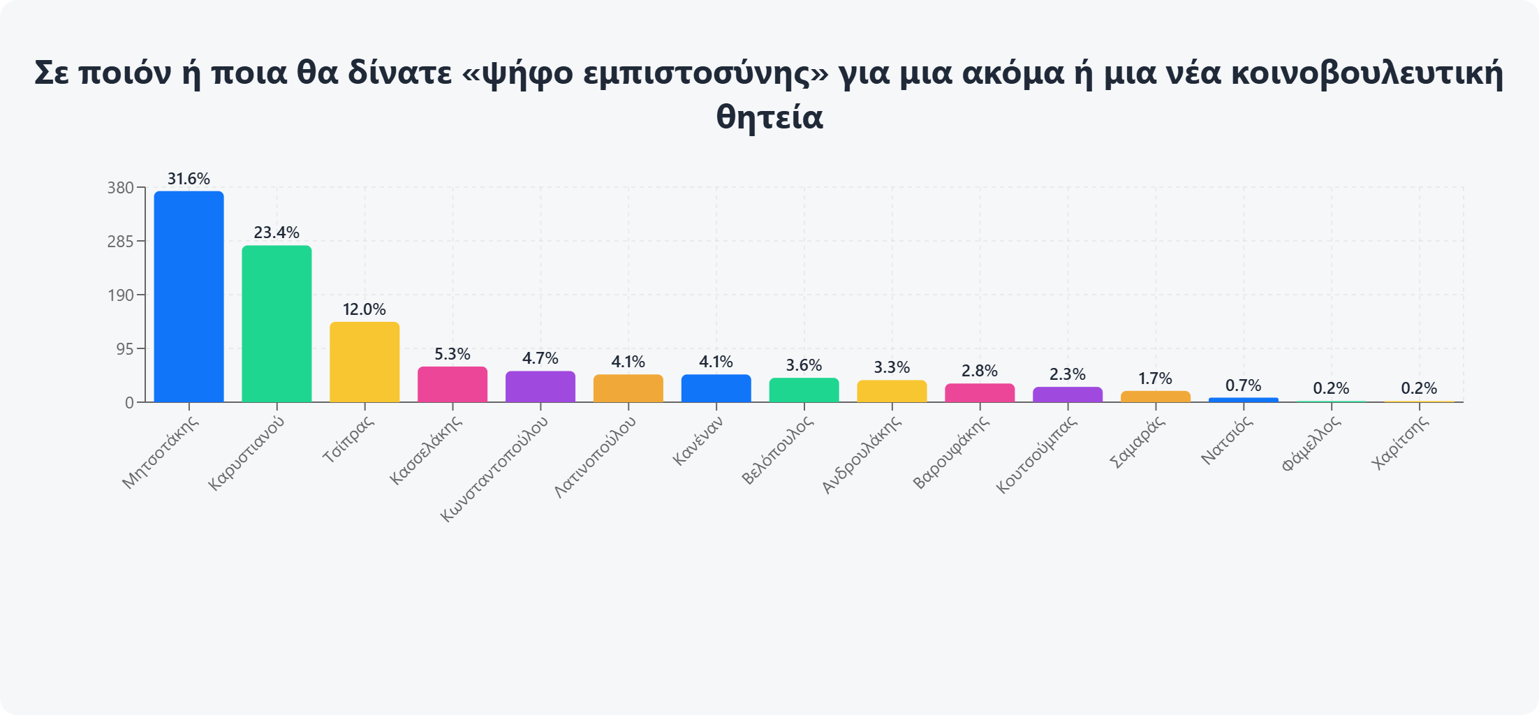 Tags: Αλέξης ΤσίπραςΑλέξης Χαρίτσης.Αντώνης ΣαμαράςΔημήτρης ΚουτσούμπαςΔημήτρης ΝάτσιοςΔημοσκόπησηΖωή ΚωνσταντοπούλουΊων ΠαπαδάκηςΚυριάκος ΒελόπουλοςΚυριάκος ΜητσοτάκηςΜαρία ΚαρυστιανούΝίκος ΑνδρουλάκηςΣωκράτης Φάμελλος