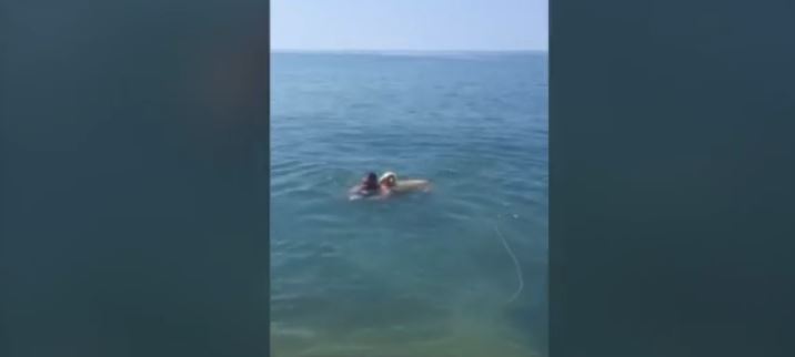 Με τις υψηλές θερμοκρασίες να έχουν κάνει ήδη την εμφάνισή τους τις τελευταίες μέρες, το πρόβατο θέλησε να δροσιστεί και αφού ο ιδιοκτήτης του έκανε την αρχή, εκείνο τον ακολούθησε, βουτώντας στο δροσερό νερό.