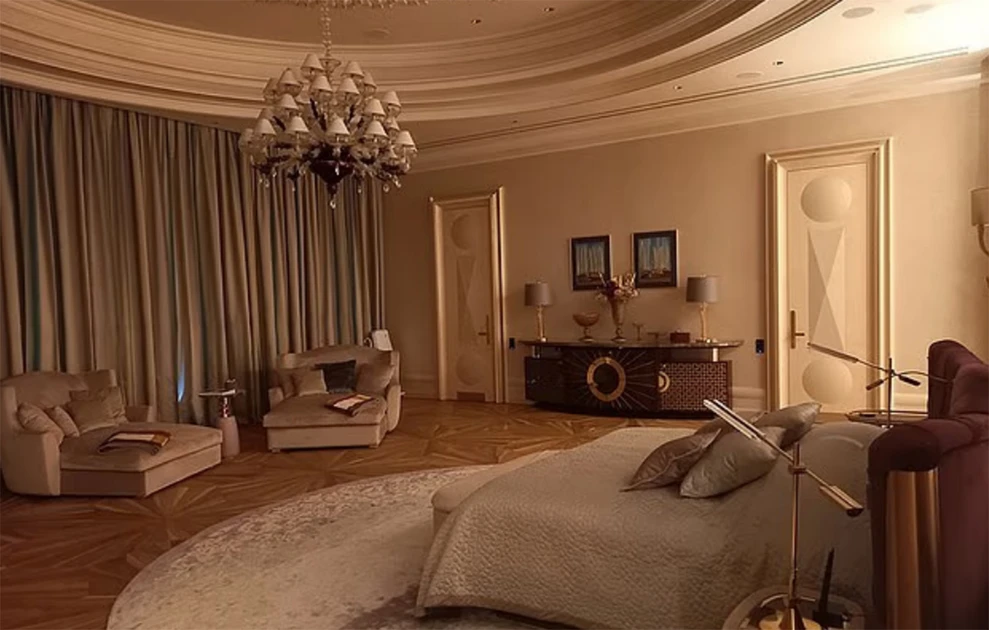 Σύμφωνα με την έρευνα, το παλάτι διαθέτει δύο τεράστιες σουίτες. Η κύρια, που αποδίδεται στον Πούτιν, φτάνει τα 240 τ.μ., ενώ το μπάνιο της ξεπερνά τα 50 τ.μ. Τα αξεσουάρ του μπάνιου – σχεδιασμένα σε μοτίβα λουλουδιών – κοστολογούνται δεκάδες χιλιάδες ευρώ, με το συνολικό κόστος των ειδών υγιεινής να αγγίζει εξαψήφια ποσά.