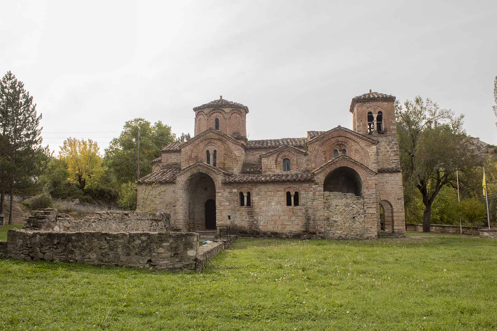 Ο αρχικός πυρήνας του καθολικού της Μονής είναι ένας τετράστηλος εγγεγραμμένος σταυροειδής Ναός με νάρθηκα. Ο πυρήνας αυτός, κρίνοντας από τις τοιχογραφίες που έχουν διασωθεί, πρέπει να οικοδομήθηκε στα μέσα του 12ου αι. Στο εσωτερικό του μνημείου υπάρχουν τοιχογραφίες σε δύο στρώματα που ανάγονται στον 13ο και στον 14ο αι.